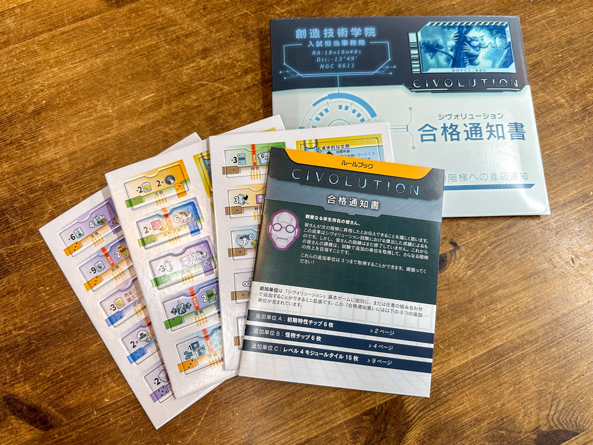 シヴォリューション:合格通知書』は、『シヴォリューション』をより遊びやすくする要素とより深く遊べるようにする要素のどちらもが含まれているので、すでに遊んだ方にもこれから遊ぶ方にもおすすめの拡張セットです。
