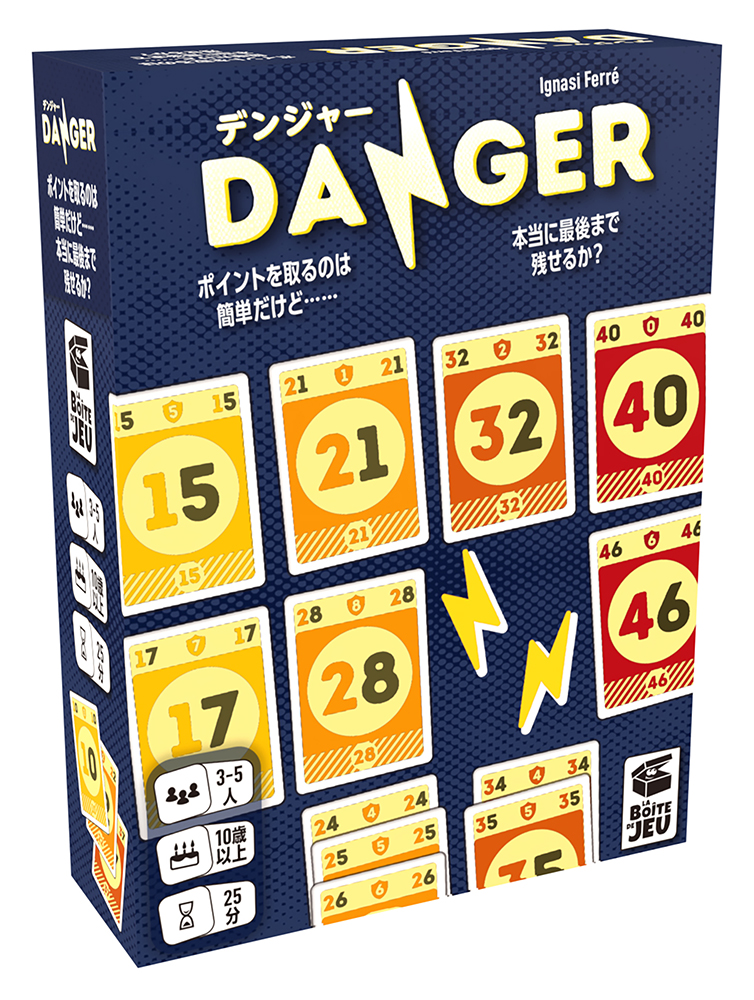 「デンジャー」は各プレイヤーが順番に1枚ずつ自分の手札のカードを出すトリックテイキングのカードゲームです。プレイヤーは3ラウンド、1ラウンドは8トリックプレイし、最大の得点を獲得することを目指します。