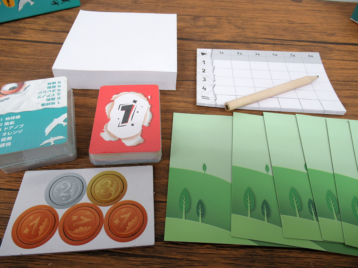 得点を記録したら次のラウンドに移りますが、今回のラウンドで使った紙片は箱に入れて共有され、次回以降のラウンドで全員が再利用することができます! 4ラウンドプレイしたらゲームが終了し、一番得点を稼いだプレイヤーが勝利し