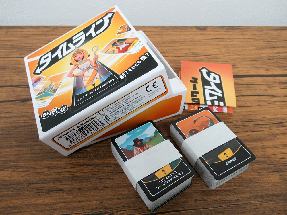 「タイムライン」は、歴史雑学カードゲームです。96枚のカードそれぞれには、歴史上の出来事と、それが発生した年(西暦)が記されています。このカードを年代順に正しく並べていくのがこのゲームの目的です。遊び方は簡単で、楽しみながら歴史や雑学も身につく、子どもから大人までエキサイティングにプレイできるカードゲームです。また、リニューアル版の他の「タイムライン」のセットと組み合わせると、より楽しく、挑戦しがいのあるゲームをプレイできます。